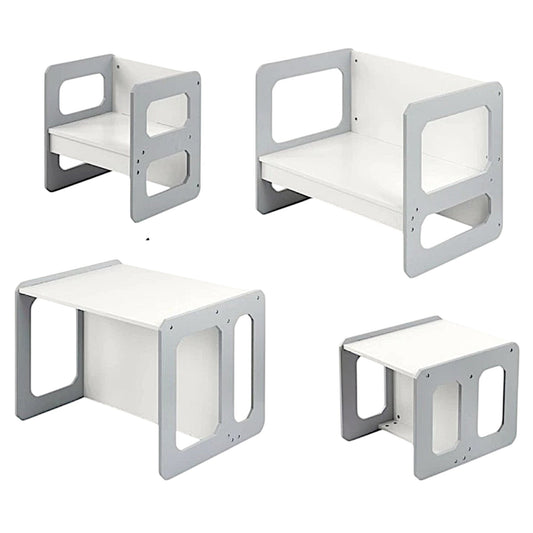 Монтесори Детска маса и Столче GINGER HOME, Дървен Комплект 3 в 1, бяло и сиво
