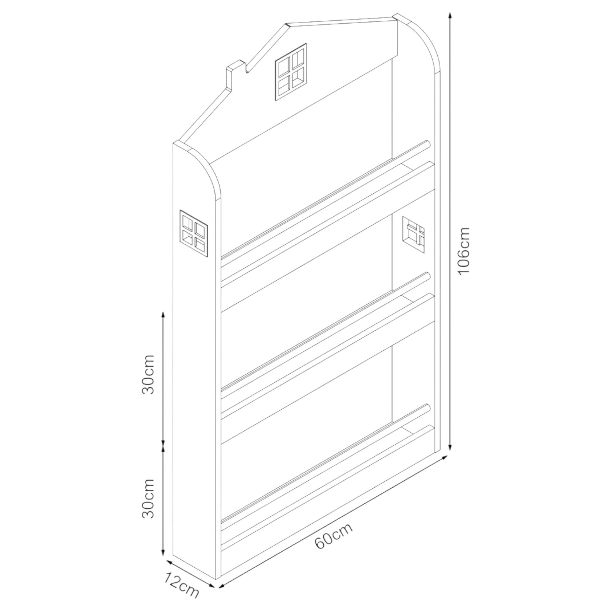 Детска Етажерка за Книги и Играчки GINGER HOME – Къщичка, 3 Рафта, Дърво, 60x12x106 см