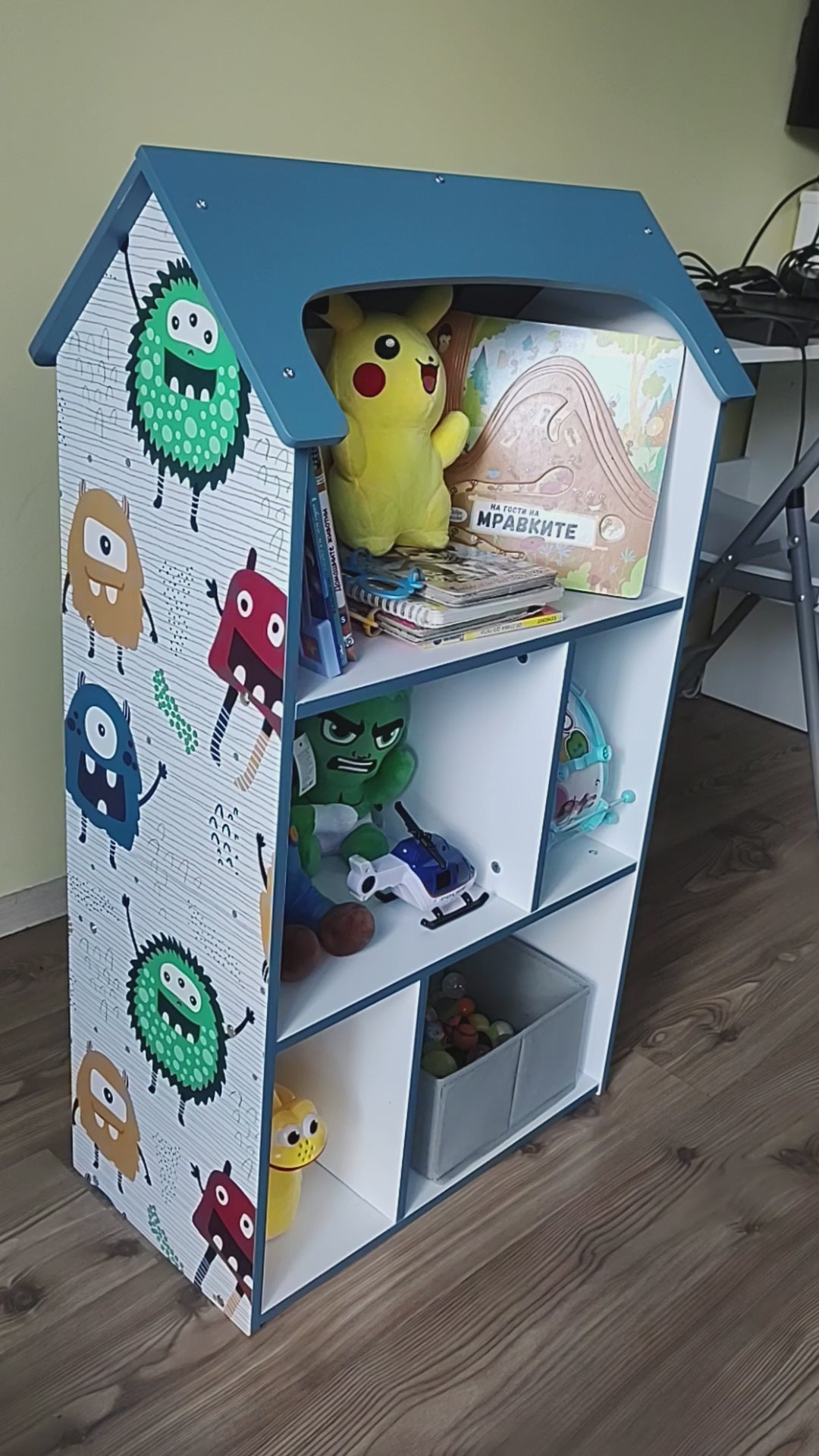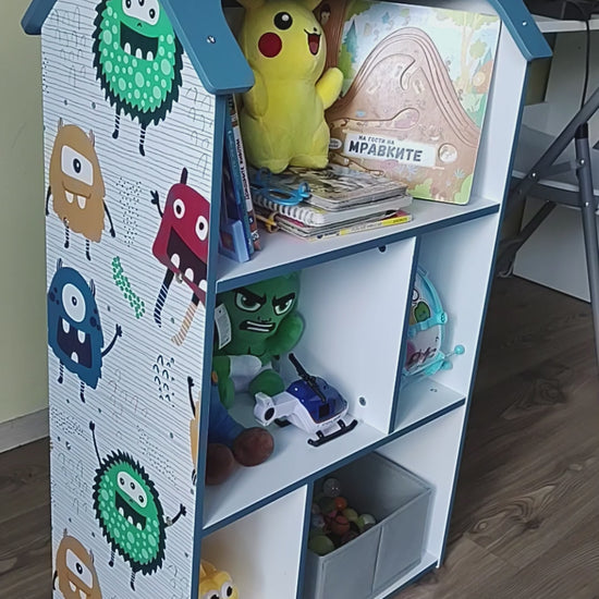 Детската етажерка GINGER HOME във формата на къщичка MONSTER е перфектното решение за организиране на играчки, книжки и други принадлежности във всяка детска стая. Тази очарователна синя етажерка комбинира функционалност, сигурност и уникален дизайн на чудовища, създавайки вдъхновяваща и уютна среда за игра и учене.
