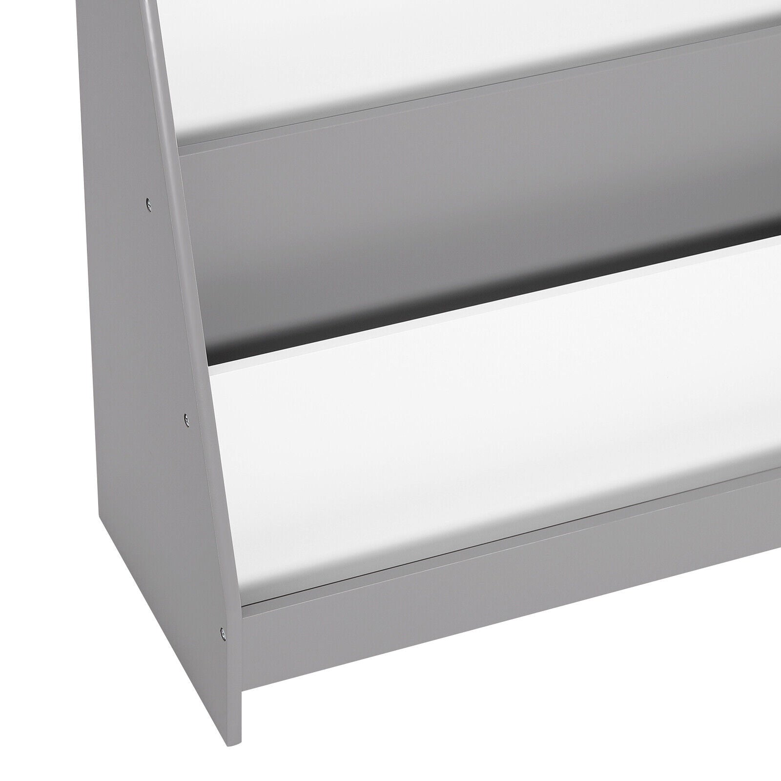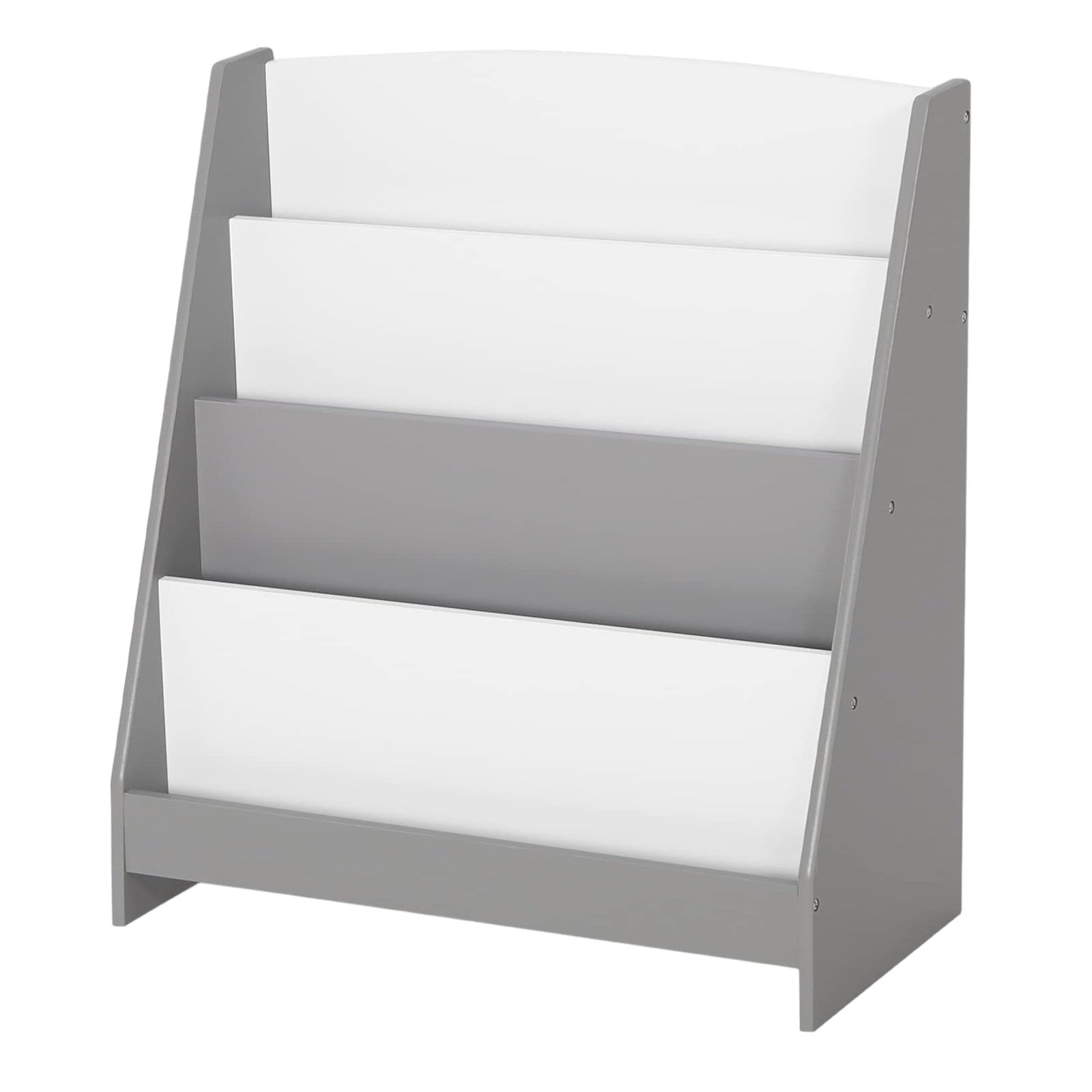 Детска Етажерка за Книжки и Списания, Библиотека с Рафтове, Дървена Секция - Бяло и Сиво
