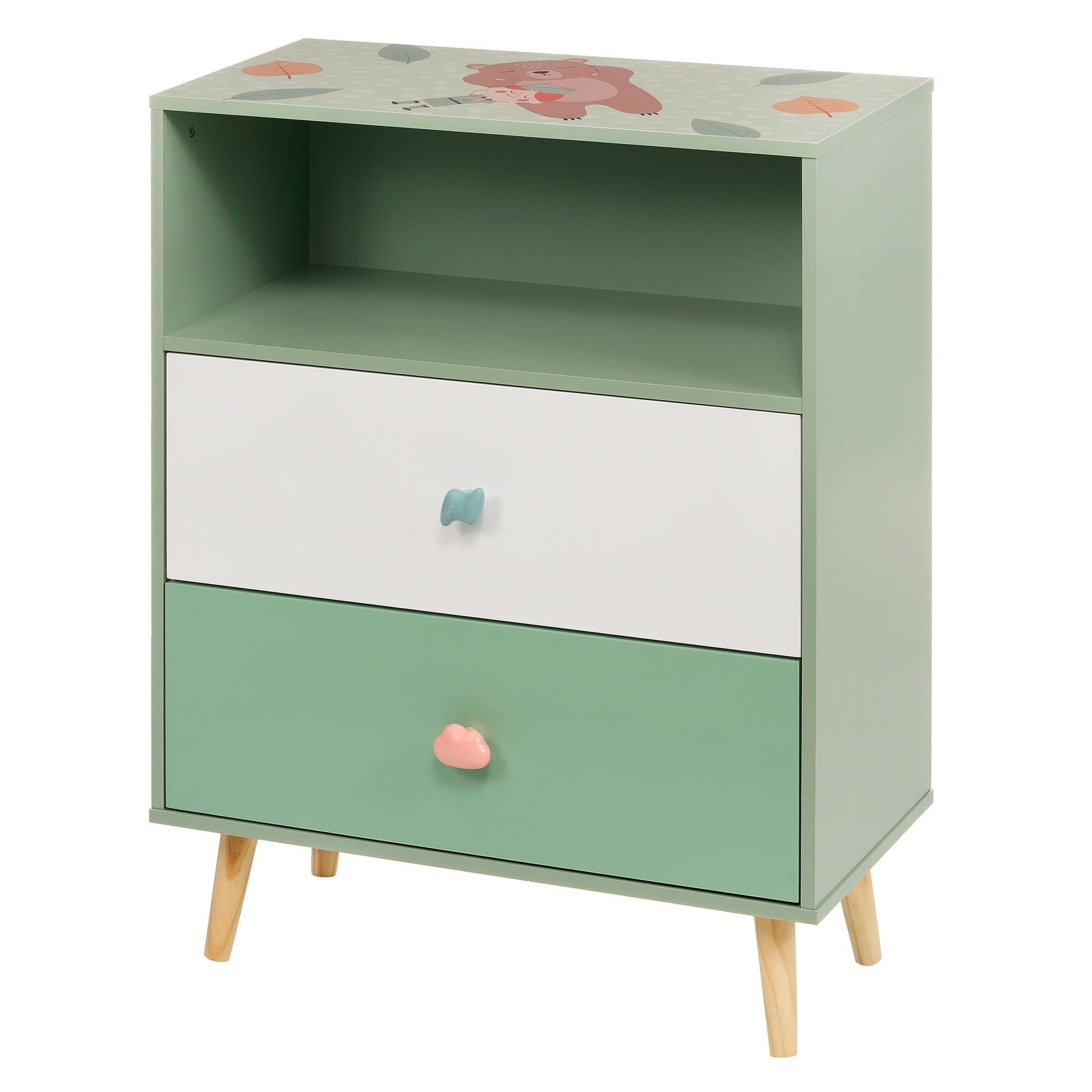Детски Шкаф за Играчки и Дрехи GINGER HOME, Етажерка за Детска Стая с 2 чекмеджета, Мече, FOREST
