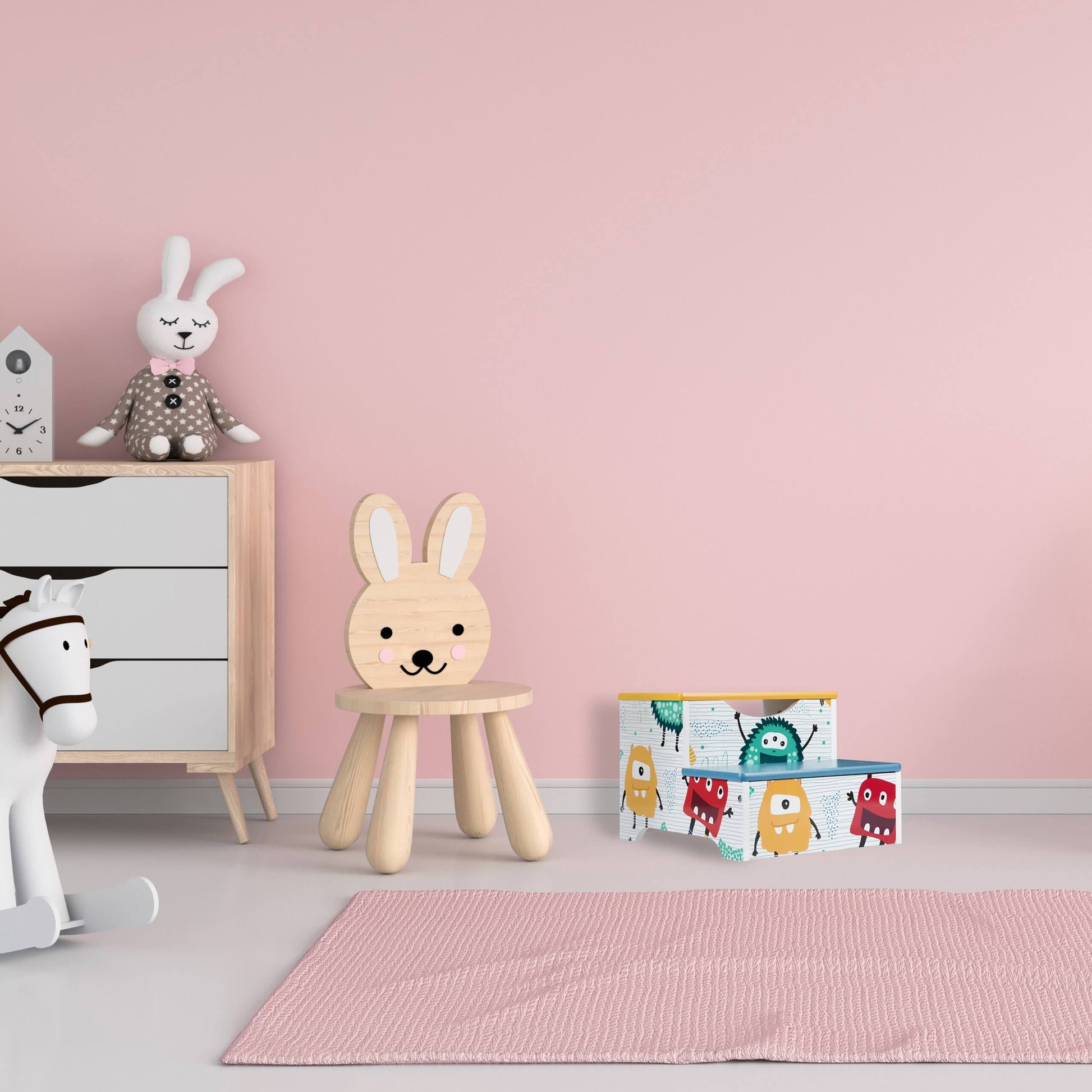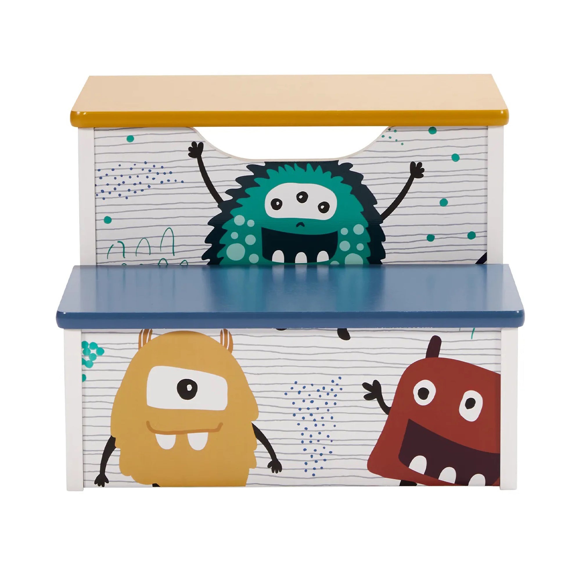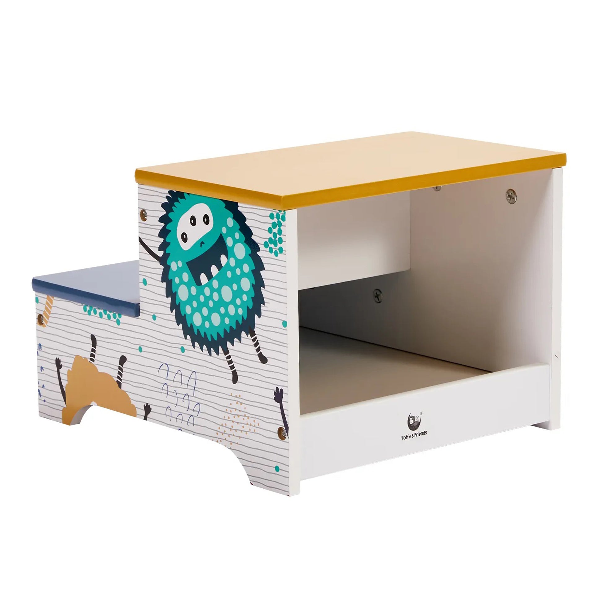 Детско Столче-Стълба, от Дърво, с 2 Стъпала, Място за Съхранение, Дръжка за Пренасяне - MONSTER