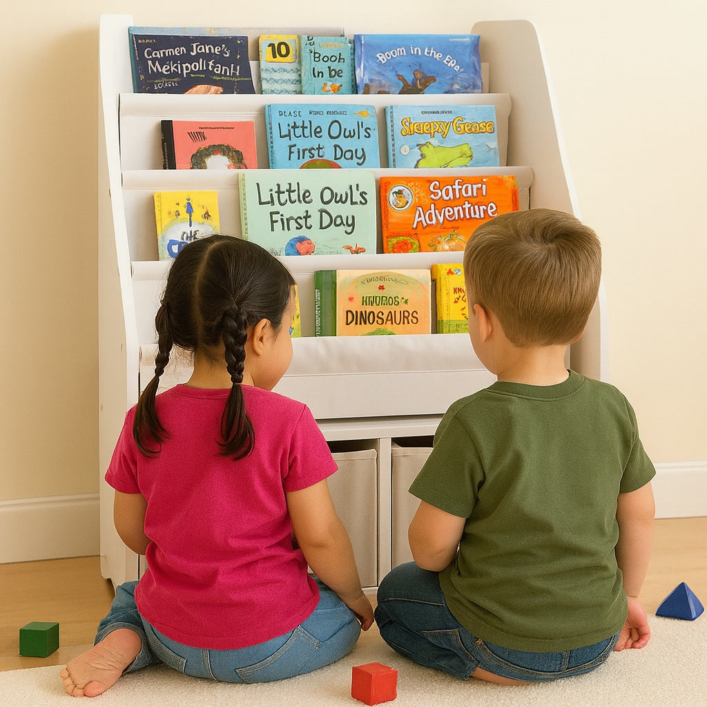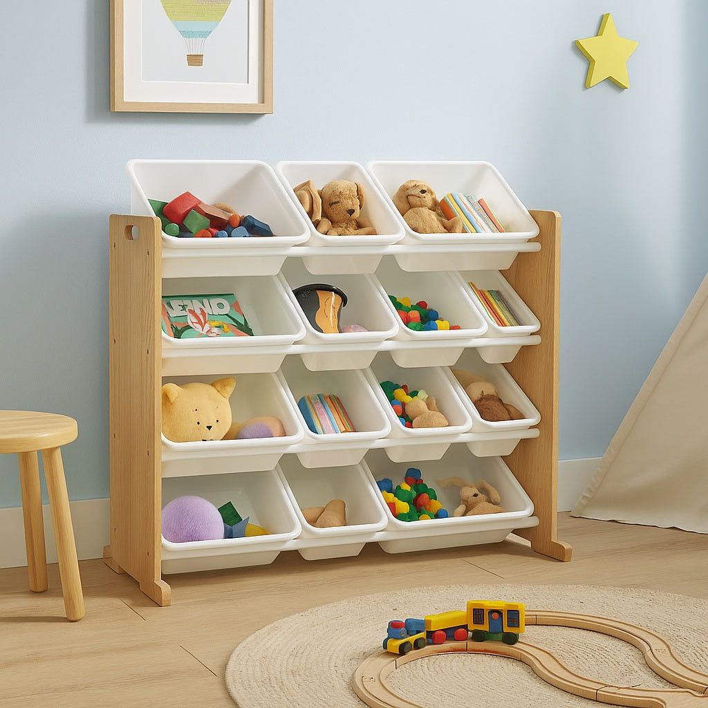 Sold outEstimated delivery date: 15.5.2026Libreria per bambini, organizer per giocattoli, GINGER HOME con 6 scomparti e contenitori tessili, bianco, mobili Montessori