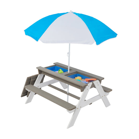 Tavolo da giardino per bambini 3 in 1 GINGER HOME, ombrellone regolabile in altezza, piano del tavolo rimovibile per giochi all'aperto attivi