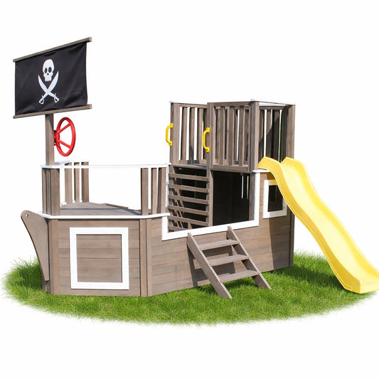 Grande casetta in legno per bambini GINGER HOME per il giardino con scivolo, 2 altalene, struttura per arrampicata e sabbiera – 250×150×267 cm