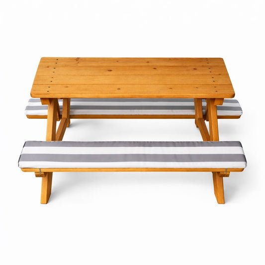 Tavolo da picnic per bambini GINGER HOME con panche e morbidi cuscini, in legno, 89x79x50 cm