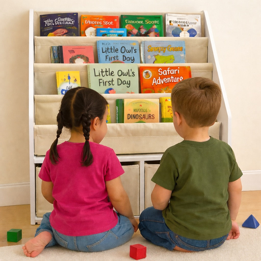 - The three storage compartments at different heights are ideal for books, magazines and pictures of different sizes. At the same time, the step design allows children to find their charming story books at a glance and arrange them by themselves after reading. The lower part of the children's shelf is a large chest for storing dolls, clothes or other items.