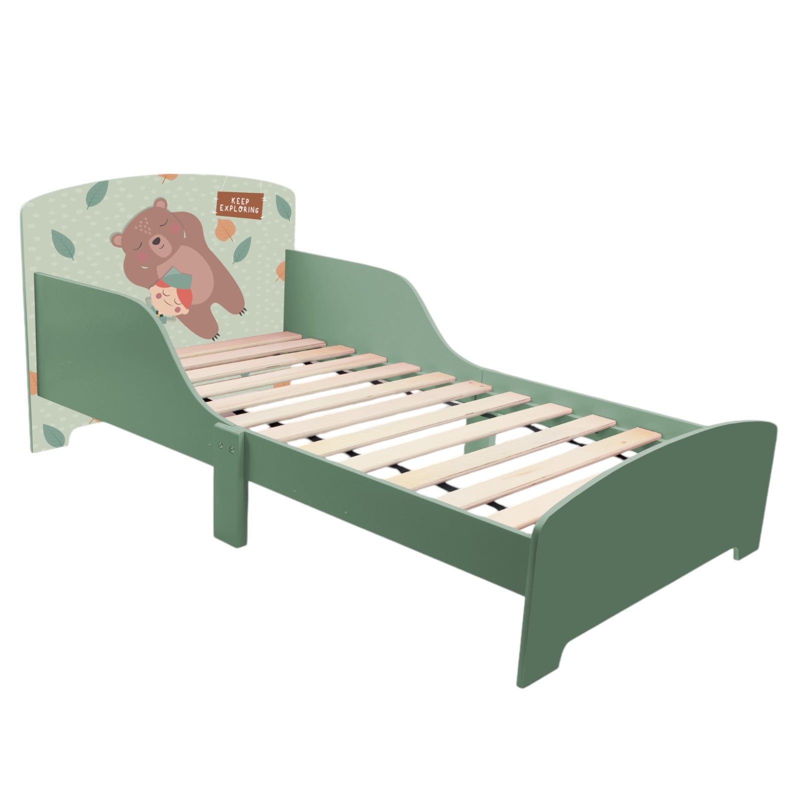 • Design: Con un design elegante e raffinato nei toni del verde e del bianco e l'immagine di un orso, il letto per bambini FOREST si adatta perfettamente a qualsiasi stanza. Offri al tuo bambino una cameretta che non solo offra comfort e sicurezza, ma che stimoli anche la sua immaginazione con l'entusiasmante design degli animali della foresta.