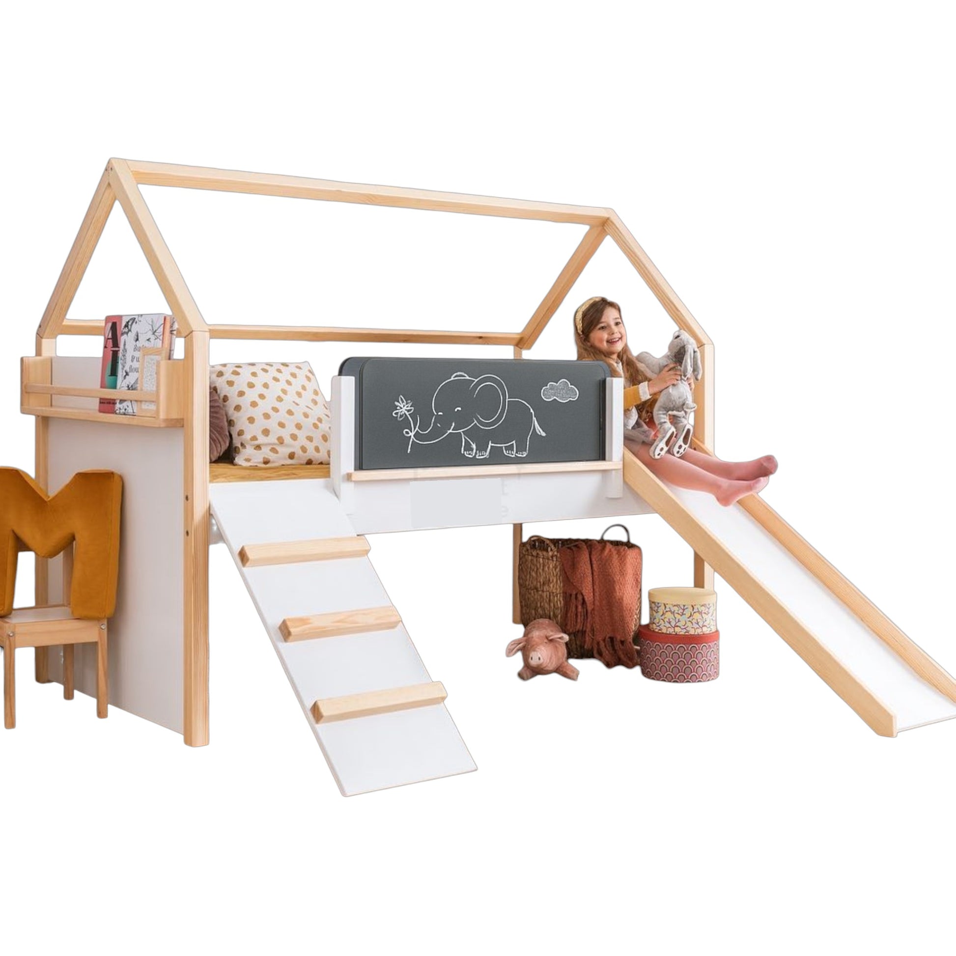 • Scivolo: un modo divertente per far scendere i bambini dal secondo piano. Il lettino Little House include uno scivolo per un divertimento extra e avventure emozionanti direttamente nella cameretta.