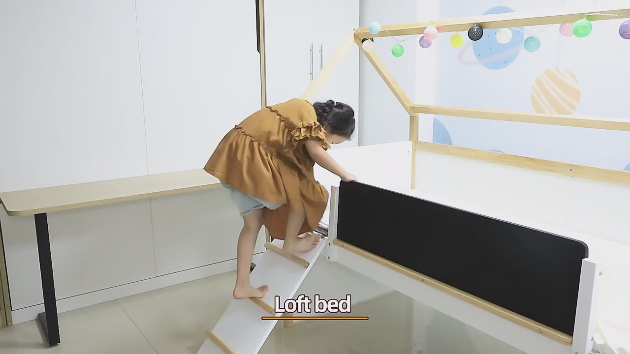 • Struttura a due piani: il letto per bambini Little House offre uno spazio per dormire pratico e divertente nella parte superiore, con un'accogliente area giochi nella parte inferiore.