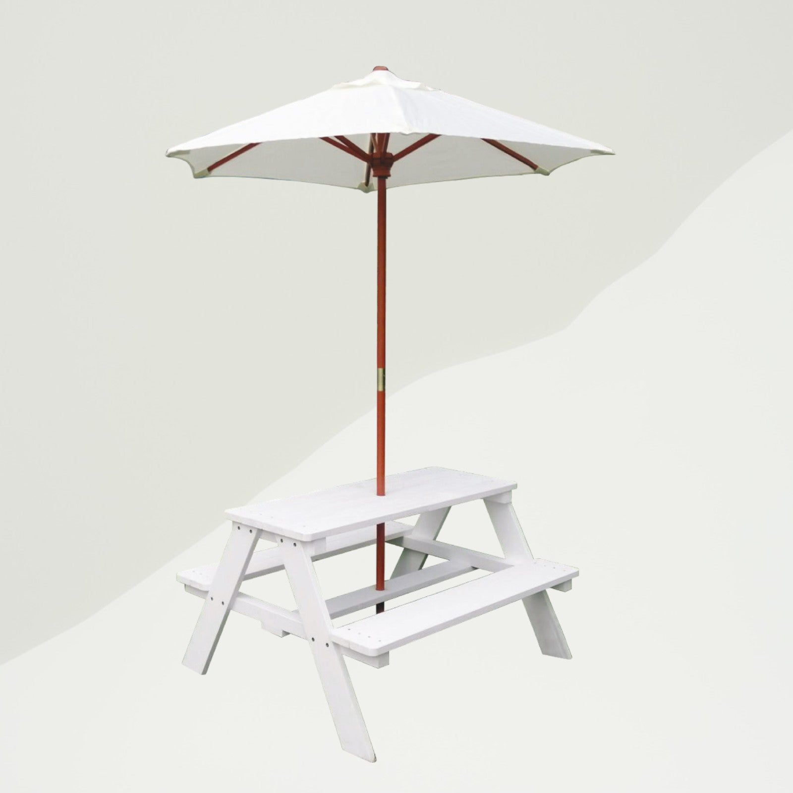 - GIOCO SICURO: Il set da giardino con tavolo da picnic per bambini con ombrellone bianco è adatto a bambini dai 2 ai 10 anni ed è stato testato per sicurezza, resistenza e stabilità, soddisfando tutti gli standard europei.